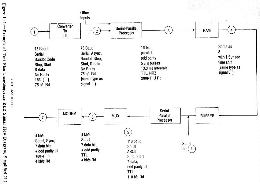 6.9. (U) Monitor Signals. -- Explain and diagram specifically how and where monitor and/or synchronization signals are to be derived for the purpose of comparing or correlating detected emanations with RED signals in Paragraph 3.0 of this test plan. Describe what precautions will be taken to preclude signal distortions and false indications of detected emanations.